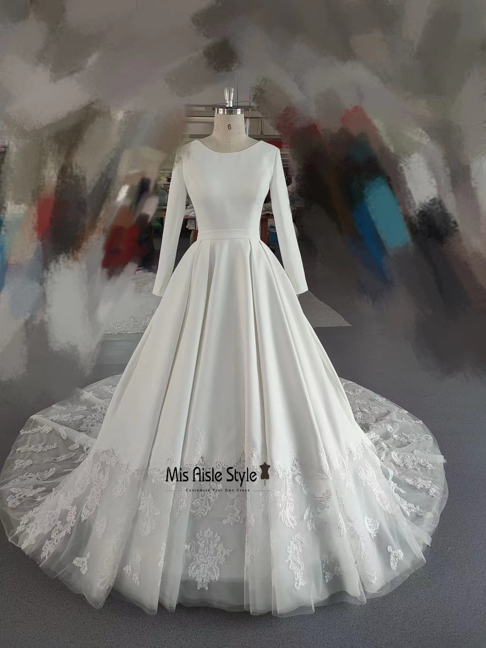Modest Long Sleeve Lace Ball Gown Wedding Dress