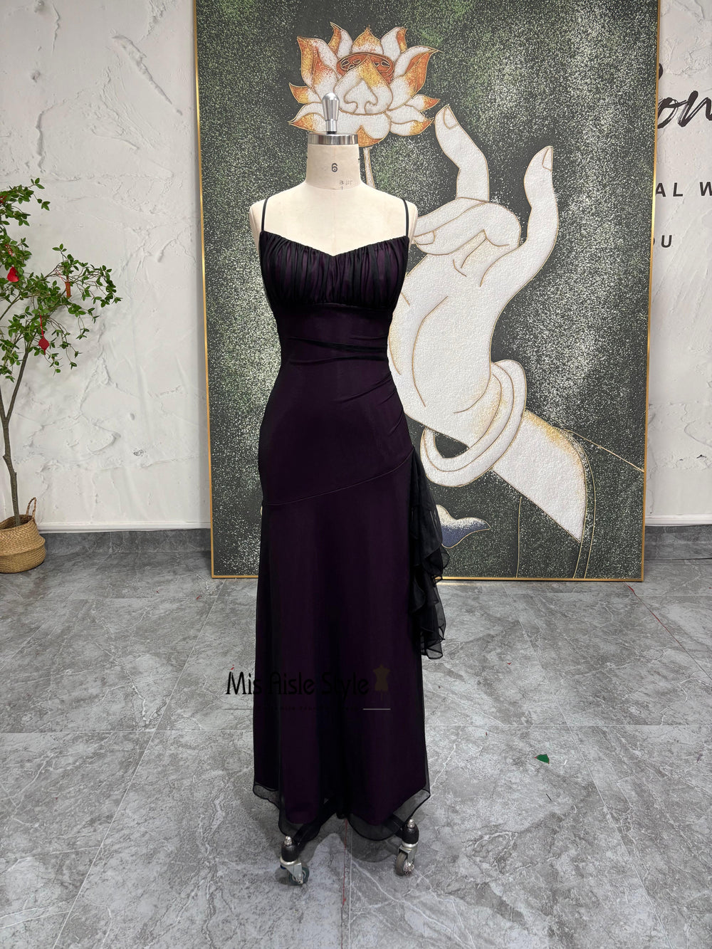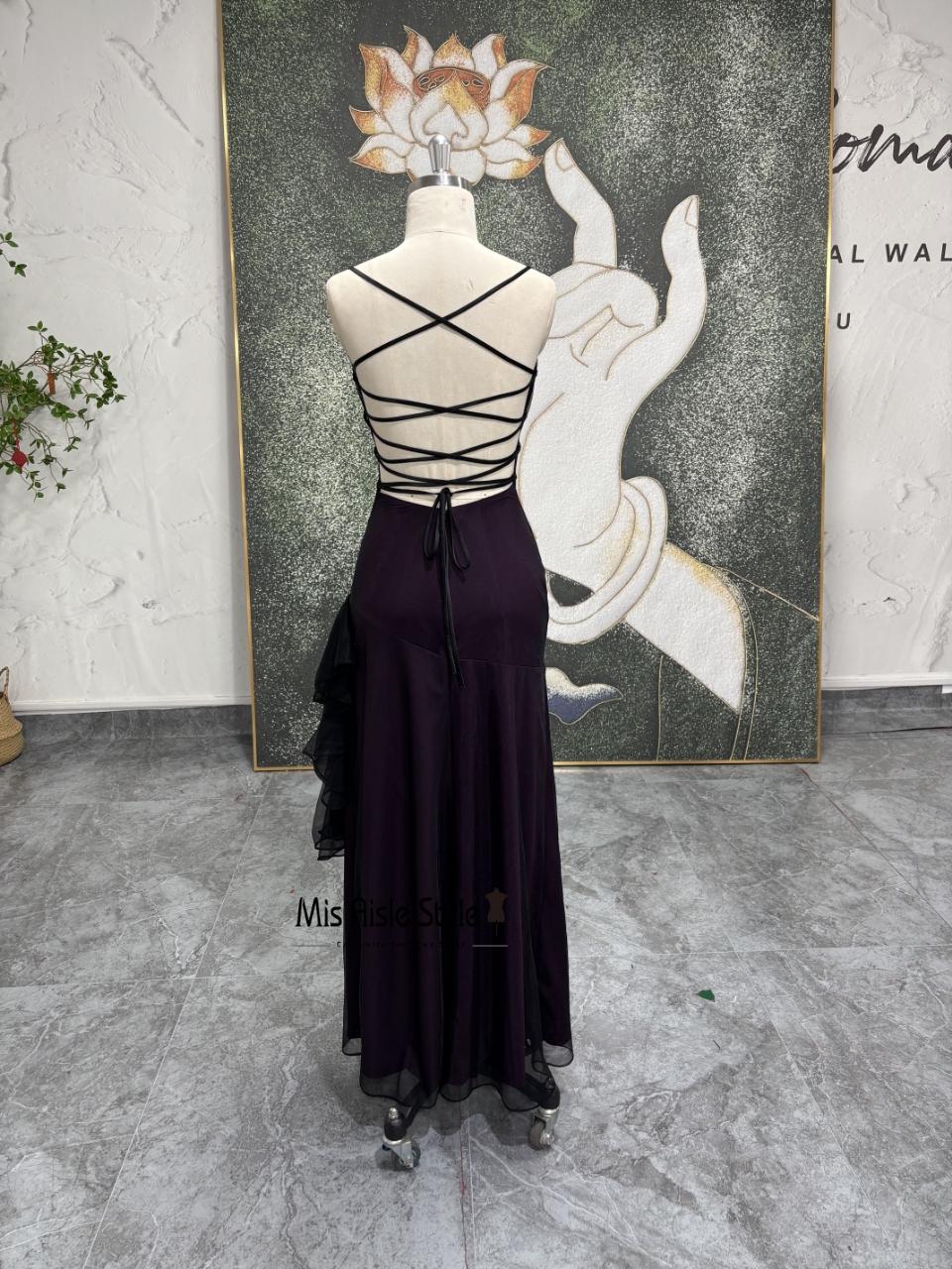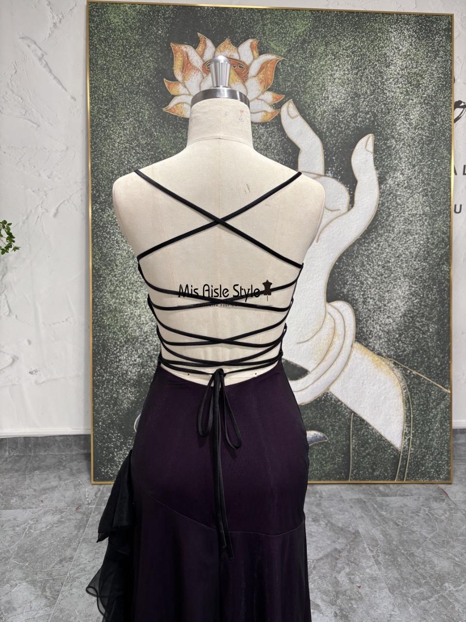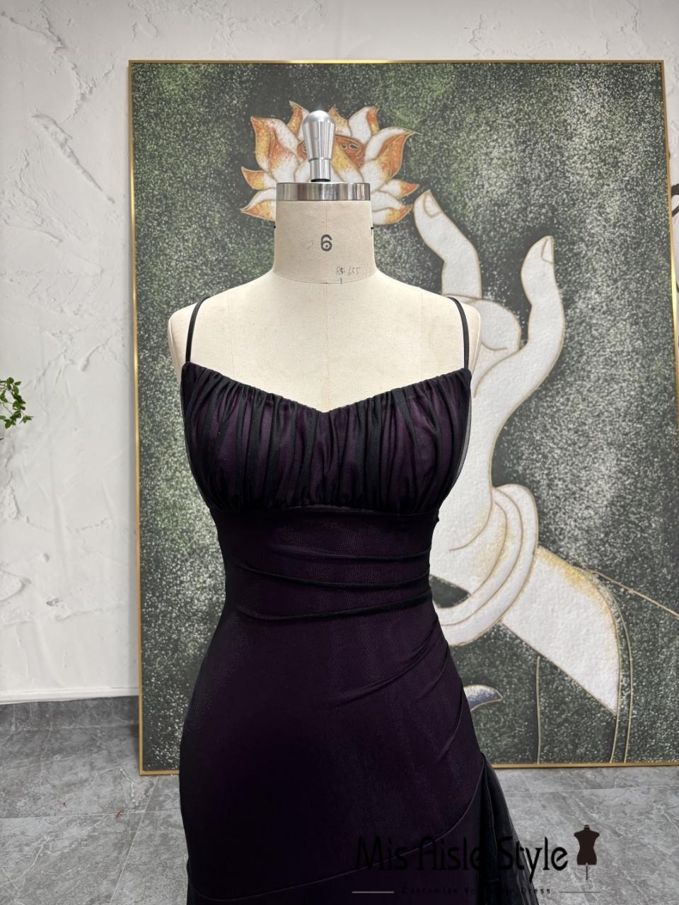 Dark Purple Spaghetti Strap Prom Dress Ruched Bodycon Evening Gown