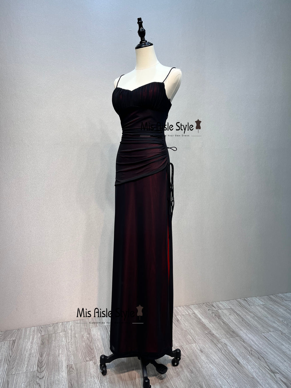 Sheath Black And Red Ruched Slit Vintage Prom Dress