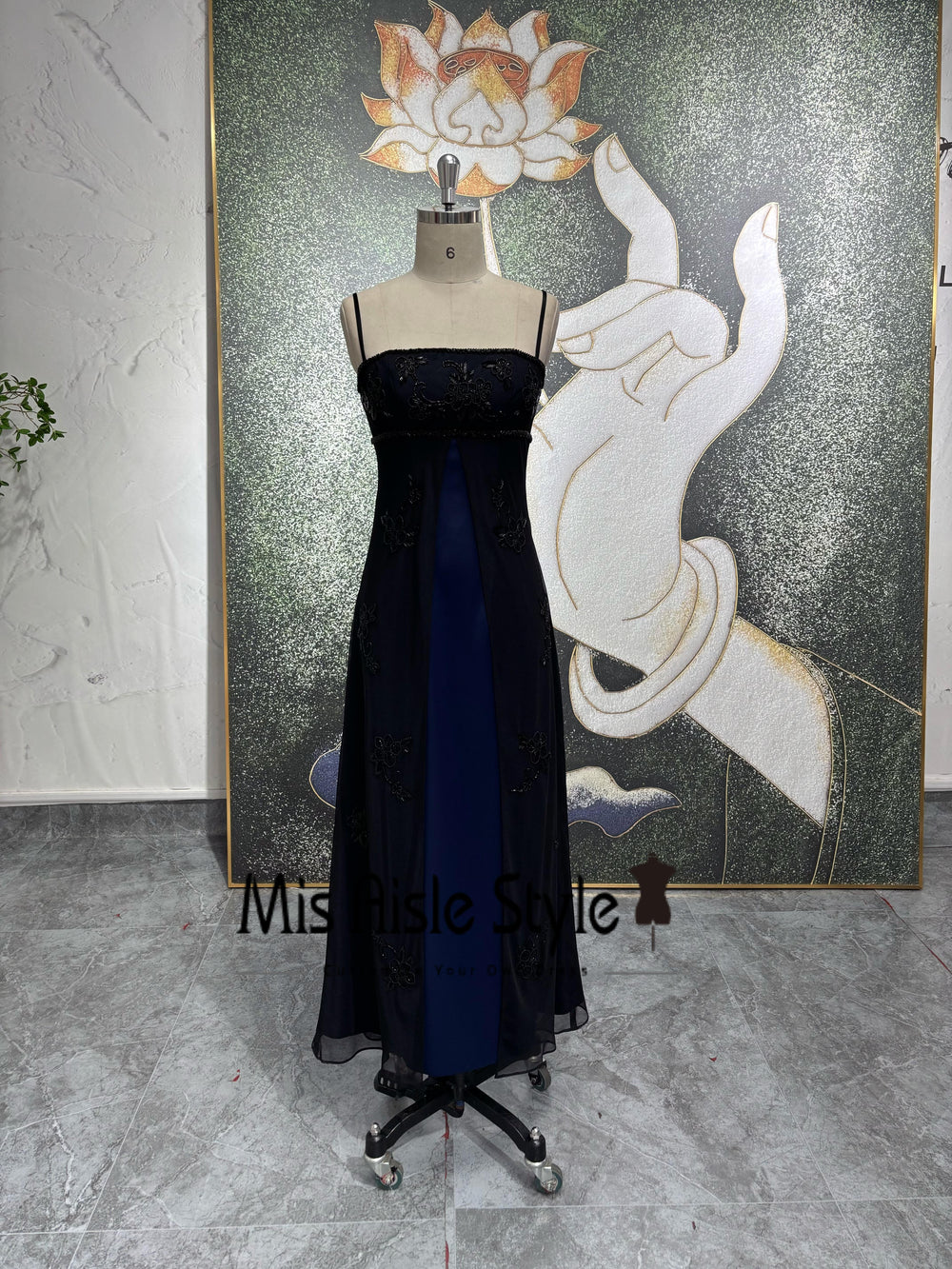 Vintage Black And Blue Handmade Beaded 90s Prom Dress
